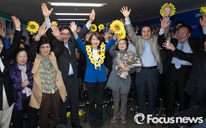 | △ 지지자들과 기뻐하는 전현희 후보 |