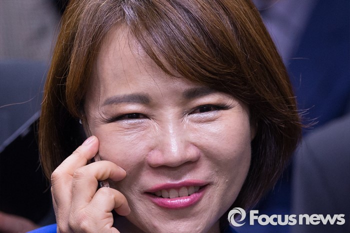 (서울=포커스뉴스) 2016 제20대 국회의원선거날인 13일 오후 서울 강남구 로즈데일빌딩에 위치한 전현희 더불어민주당 강남을 후보 선거사무소에서 전 후보가 통화를 하고 있다.