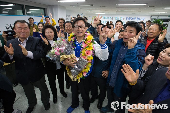| △ 만세하는 강병원 더민주 후보 |