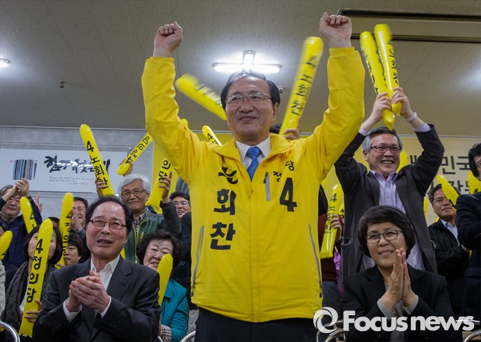 (서울=포커스뉴스) 이른바 '떡값 검사' 실명 공개로 의원직을 상실했던 노회찬 정의당 후보가 더불어민주당과의 단일후보로 3선에 성공했다.