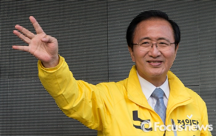 (창원=포커스뉴스) 제20대 국회의원선거 경남 창원 성산구 국회의원에 당선된 노회찬 정의당 당선인이 14일 오전 창원시 위아사거리에서 출근길 시민들에게 당선인사를 하고 있다.