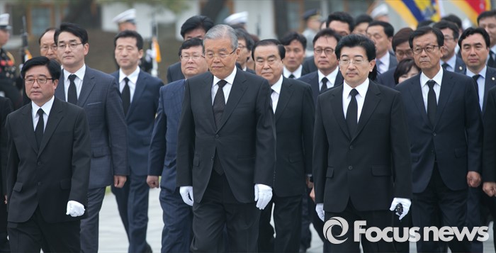 (서울=포커스뉴스) 14일 오전 동작구 국립서울현충원에서 김종인 더불어민주당 비대위 대표와 20대 총선 당선인들이 현충탑 참배를 위해 이동하고 있다.