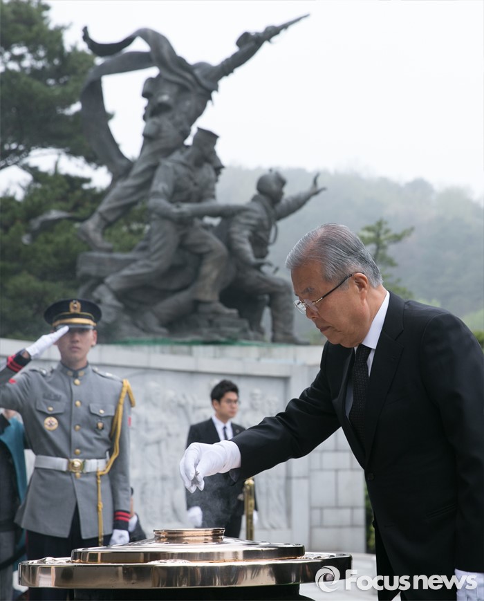(서울=포커스뉴스) 14일 오전 동작구 국립서울현충원에서 김종인 더불어민주당 비대위 대표와 20대 총선 당선인들이 현충탑 참배를 하고 있다.