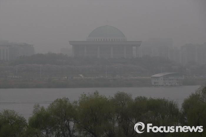 (서울=포커스뉴스) 제 20대 국회의원 선거가 끝난 14일 오전 서울 마포구 마포대교에서 안개에 둘러싸인 국회가 보이고 있다.