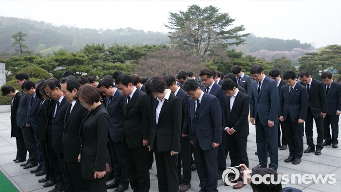 (서울=포커스뉴스) 14일 오전 동작구 국립서울현충원에서 김종인 더불어민주당 비대위 대표와 20대 총선 당선인들이 현충탑 참배를 하고 있다.