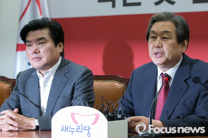 (서울=포커스뉴스) 김무성(오른쪽) 새누리당 대표가 14일 오전 서울 여의도 국회에서 열린 중앙선대위 해단식에 참석해, 발언하고 있다. 이 자리에서 김 대표는 "선거 참패에 책임을 지고, 오늘부터 대표직을 사퇴한다"고 밝혔다.