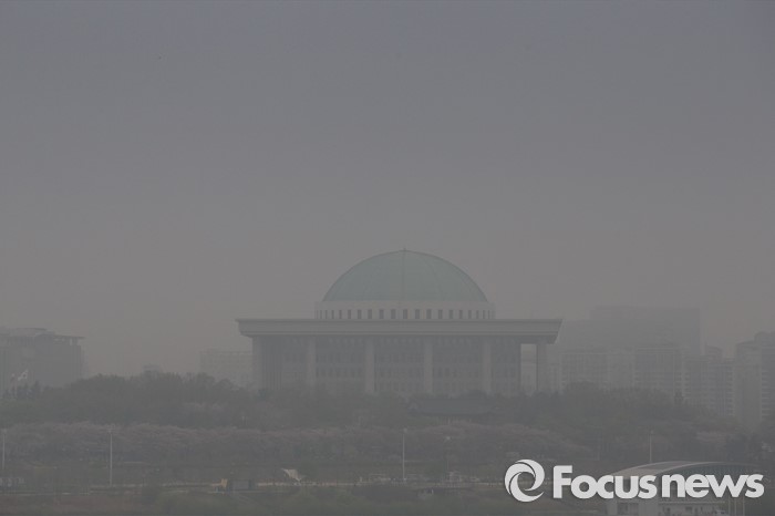 (서울=포커스뉴스) 제 20대 국회의원 선거가 끝난 14일 오전 서울 마포구 마포대교에서 안개에 둘러싸인 국회가 보이고 있다.