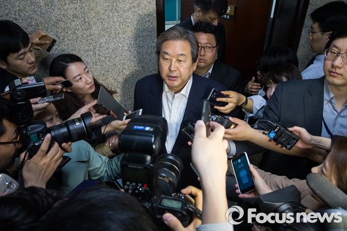| △ 취재진 질문 답하는 김무성 |