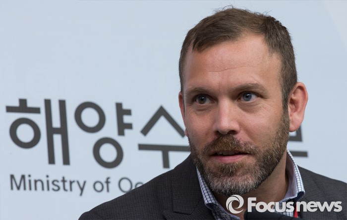 (세종=포커스뉴스) 14일 오전 세종시 정부세종청사 해양수산부 기자실에서 Simon Burthem TMC 지사장이 세월호 인양 작업 관련 질문에 답변하고 있다.