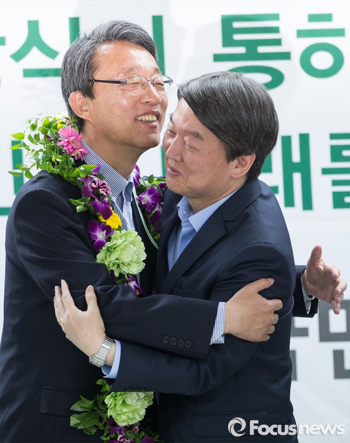 | △ 김성식과 포옹하는 안철수 |