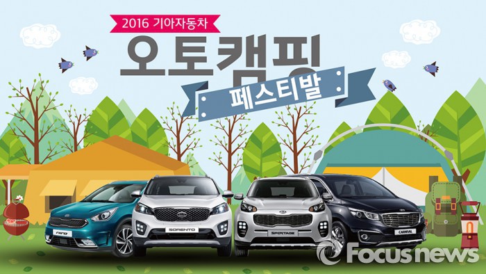 (서울=포커스뉴스) 기아자동차는 다음 달 충주호 캠핑월드에서 진행되는 '2016 기아자동차 오토캠핑 페스티벌'에 참여할 고객을 모집한다고 14일 밝혔다.