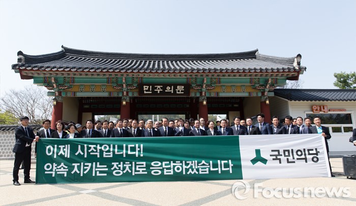 (광주=포커스뉴스) 14일 오후 광주 북구 국립5.18민주묘지에서 천정배 국민의당 공동대표를 비롯한 광주 지역 당선자들이 참배를 마치고 취재진 질문에 답하고 있다.