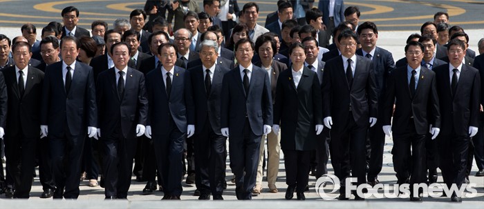 (광주=포커스뉴스) 천정배 국민의당 공동대표를 비롯한 광주 지역 당선자들이14일 오후 광주 북구 국립5.18민주묘지에서 참배를 위해 이동하고 있다.