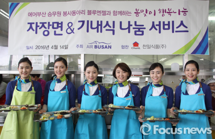 (서울=포커스뉴스) 에어부산은 블랙데이를 맞아 짜장면 나눔 행사를 가졌다고 14일 밝혔다.