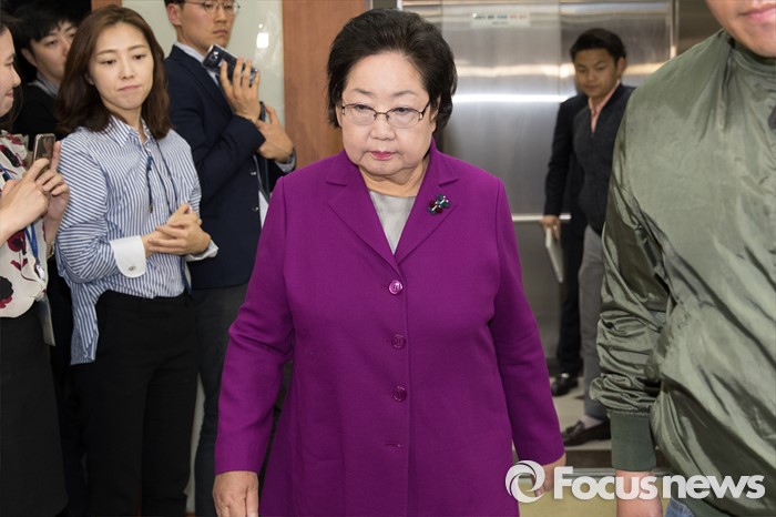 (서울=포커스뉴스) 20대 총선 패배에 대한 책임을 지고 김무성 새누리당 대표가 당 대표직 사퇴를 표명한 14일 오후 서울 여의도 당사에서 비대위 구성 등 논의를 위해 열린 긴급 최고위원회의에 김을동 최고위원이 참석하고 있다.