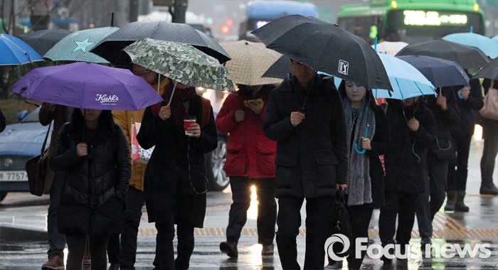 .focus_w_t_box:after, .focus_w_t_wrapper:after{clear:both;display:block;content:"";}.focus_w_t_wrapper {list-style:none;max-width:700px; padding:0px;margin:0px;margin:auto;position:relative; position: relative !important;top: 0px !important;left: 0px !important;height:auto !important;}.focus_w_t_wrapper li{width:49%;max-width:174px;float:left;border:1px solid RGB(199, 199, 199);margin-left:-1px;margin-top:-1px;position: relative;height:132px !important;vertical-align: top;cursor: pointer; }.focus_w_t_m, .focus_w_t_m_1, .focus_w_t_m_2{ table-layout: fixed;width:100%;height:132px;border-collapse: collapse; font-family: 나눔고딕, NanumGothic, sans-serif; background-color:white;}.focus_w_t_m_1 td, .focus_w_t_m_2 td{ text-align:center; }.focus_w_t_m td{text-align:center;}.focus_w_t_m_1 .focus_tit, .focus_w_t_m_2 .focus_tit{background-color:rgb(81, 143, 187); color:white;font-weight:bold;height:29px;}.focus_w_t_m {background-color:rgb(225, 225, 225);}.focus_w_t_m_2{background-color:rgb(235, 235, 235);}.focus_p{background-color:rgb(235, 235, 235);color:rgb(102, 102, 102);font-weight:bold;border-top:1px solid RGB(199, 199, 199);}.focus_temp{font-weight:bold;}.focus_w_t_box:after, .focus_w_t_wrapper:after{clear:both;display:block;content:"";}.focus_w_t_wrapper {list-style:none;max-width:700px; padding:0px;margin:0px;margin:auto;position:relative; position: relative !important;top: 0px !important;left: 0px !important;height:auto !important;}.focus_w_t_wrapper li{width:49%;max-width:174px;float:left;border:1px solid RGB(199, 199, 199);margin-left:-1px;margin-top:-1px;position: relative;height:132px !important;vertical-align: top;cursor: pointer; }.focus_w_t_m, .focus_w_t_m_1, .focus_w_t_m_2{ table-layout: fixed;width:100%;height:132px;border-collapse: collapse; font-family: 나눔고딕, NanumGothic, sans-serif; background-color:white;}.focus_w_t_m_1 td, .focus_w_t_m_2 td{ text-align:center; }.focus_w_t_m td{text-align:center;}.focus_w_t_m_1 .focus_tit, .focus_w_t_m_2 .focus_tit{background-color:rgb(81, 143, 187); color:white;font-weight:bold;height:29px;}.focus_w_t_m {background-color:rgb(225, 225, 225);}.focus_w_t_m_2{background-color:rgb(235, 235, 235);}.focus_p{background-color:rgb(235, 235, 235);color:rgb(102, 102, 102);font-weight:bold;border-top:1px solid RGB(199, 199, 199);}.focus_temp{font-weight:bold;}전국 대부분 지역이 흐리고 비가 내리는 12일 오전 서울 광화문 사거리에서 출근길 시민들이 발걸음을 재촉하고 있다. 김인철 기자