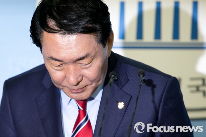 | △ 기자회견 마친 뒤 인사하는 안상수 |