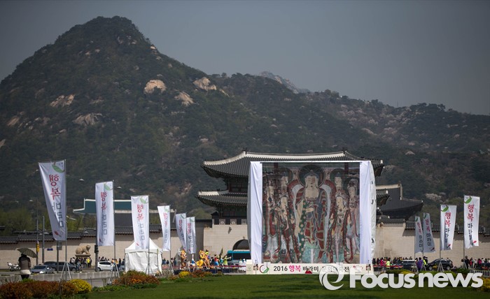 | △ 광화문 광장에 걸린 대형 탱화 |