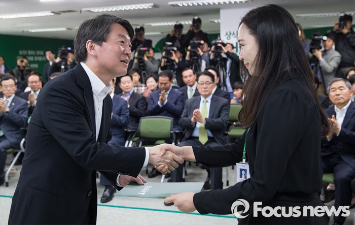 (서울=포커스뉴스) 안철수 국민의당 상임공동대표가 15일 오전 서울 마포구 당사에서 열린 국민의당 당선자 대회 및 선거대책위원회 해단식에서 김윤정 자원봉사자 대표에게 감사장을 수여하고 있다.