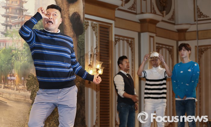 (서울=포커스뉴스) 15일 오후 서울 강남구 임피리얼 팰리스 호텔에서 열린 tvN go '신서유기2' 제작발표회에 참석한 개그맨 강호동(왼족)이 포토타임을 갖고 있다.