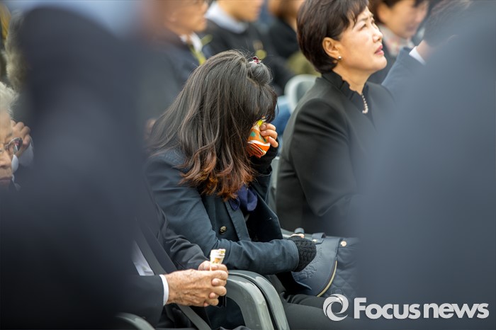 (안산=포커스뉴스) 16일 오전 경기도 안산시 단원구 화랑유원지에 마련된 합동분향소에서 열린 '세월호 참사 2년 기억식'에 참석한 한 유가족이 눈물을 흘리고 있다.