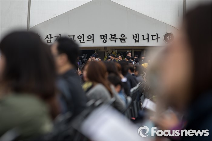 (안산=포커스뉴스) 16일 오전 경기도 안산시 단원구 화랑유원지에 마련된 합동분향소에서 '세월호 참사 2년 기억식'이 열리고 있다.