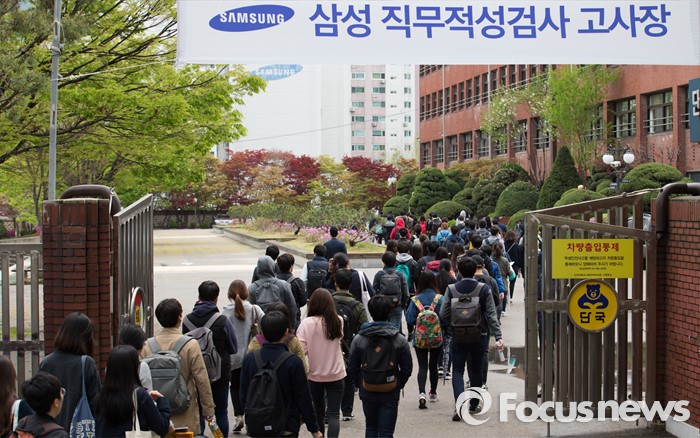 (서울=포커스뉴스) 17일 오전 서울 강남구 단국대학교부속고등학교에서 삼성그룹 공개채용시험 직무적성검사(GSAT)를 치르기 위한 취업준비생들이 고사장으로 향하고 있다.