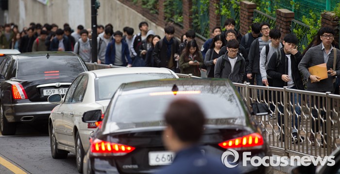 (서울=포커스뉴스) 17일 오전 서울 강남구 단국대학교부속고등학교에서 삼성그룹 공개채용시험 직무적성검사(GSAT)를 치르기 위한 취업준비생들이 고사장으로 향하고 있다.