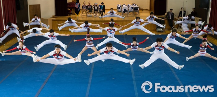 (서울=포커스뉴스) 17일 오후 서울 서대문구 동명여자중학교 체육관에서 열린 '2016 치어리딩 국가대표 선수단 출정식'에 참석한 선수들이 치어리딩 연기를 선보이고 있다.
