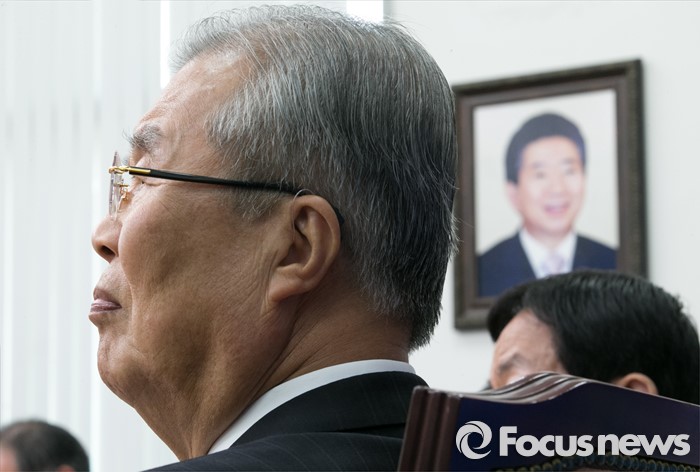 (서울=포커스뉴스) 김종인 더불어민주당 비대위 대표가 18일 오전 서울 여의도 국회에서 비상대책위원회의에 참석해 비대위원들의 발언을 듣고 있다.