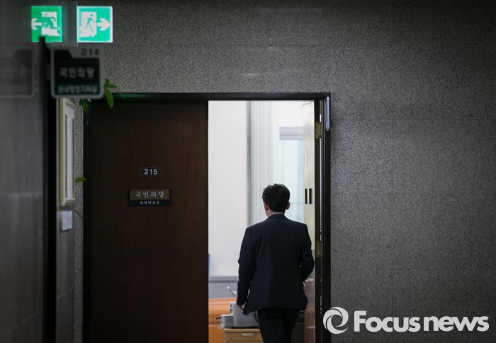 (서울=포커스뉴스) 18일 오전 서울 여의도 국회 본청에 마련된 국민의당 사무실에서 당직자들이 이동하고 있다.