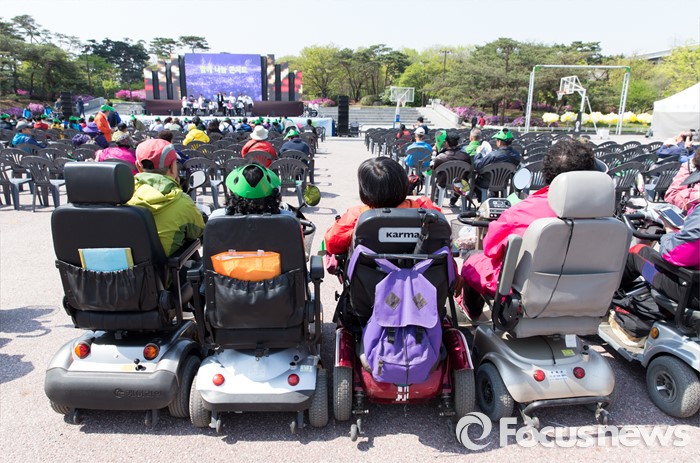 (서울=포커스뉴스) 18일 오전 서울 영등포구 여의도공원에서 함께서울 누리축제에 참가한 장애인들이 예술공연을 관람하고 있다.