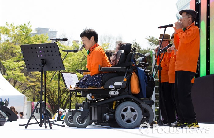 (서울=포커스뉴스) 18일 오전 서울 영등포구 여의도공원에서 함께서울 누리축제에 참가한 장애인 공연팀이 예술공연을 선보이고 있다.