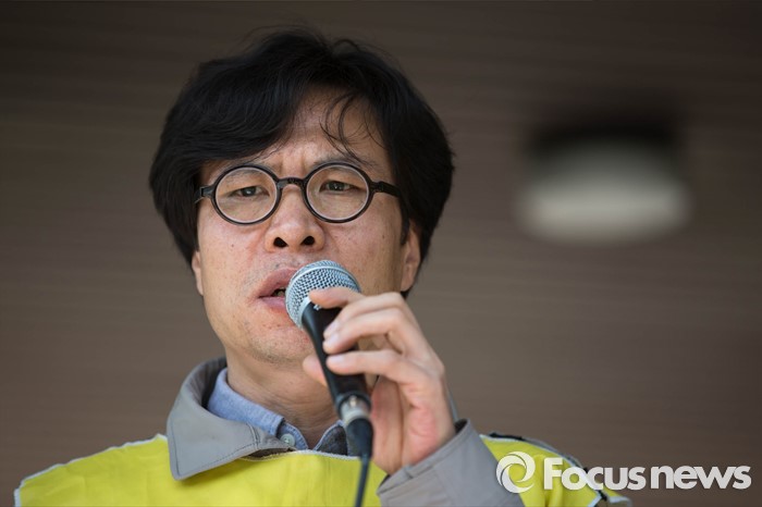 | △ 심각한 표정으로 발언하는 기자회견 참가자 |