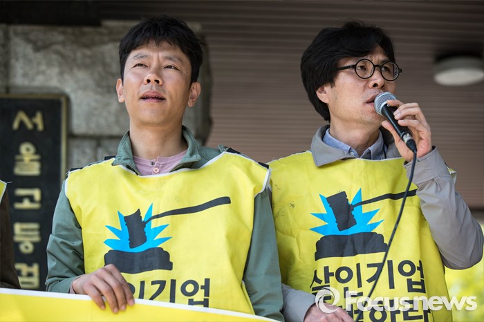 (서울=포커스뉴스) 18일 오전 서울 서초구 서울중앙지방검찰청 앞에서 가습기살균제피해자와가족모임 등 단체들이 엄정한 가습기 살균제 피해 조사를 촉구하는 기자회견을 하고 있다.