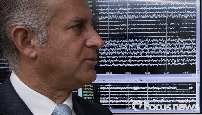 (대전=포커스뉴스) 오스카 에레라 주한 에콰도르 대사가 18일 오전 대구 유성구 한국지질자원연구원 내 지진연구센터 상황실을 방문, 에콰도르 현지 지진상황에 대한 설명듣고 있다.