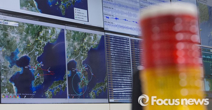 (대전=포커스뉴스) 오스카 에레라 주한 에콰도르 대사가 18일 오전 대구 유성구 한국지질자원연구원 내 지진연구센터 상황실을 방문한 상황싱 모니터에 현재 지질상황이 보이고 있다.