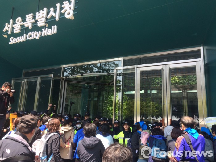 기자회견 이후 이들 단체는 "박원순 시장에 면담을 요청한다"며 시청 정문 진입을 시도했다.