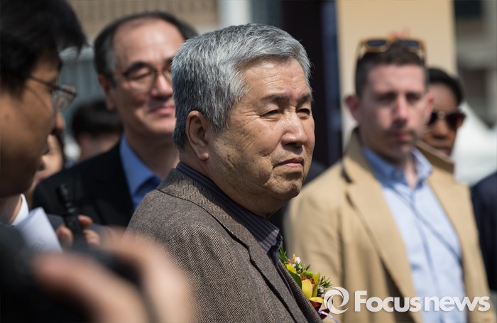 (서울=포커스뉴스) 18일 오후 서울시청 앞 광장에서 열린 '한국영화 100년 사진전' 개막식에 임권택 감독이 참석하고 있다.