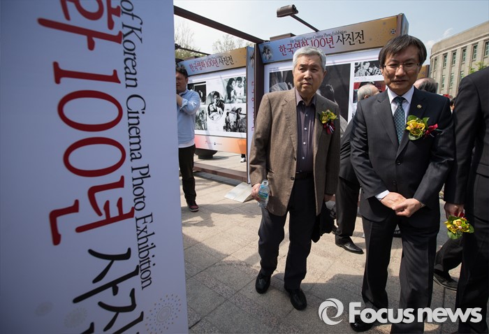(서울=포커스뉴스) 18일 오후 서울시청 앞 광장에서 열린 '한국영화 100년 사진전' 개막식에 임권택 감독이 참석하고 있다.