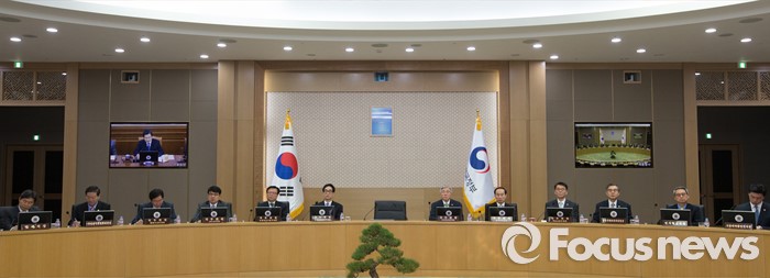 (세종=포커스뉴스) 19일 오전 세종시 정부세종청사 국무회의장에서 서울-세종 영상회의로 열린 국무회의에 참석한 국무위원들이 황교안 총리의 모두발언을 경청하고 있다.