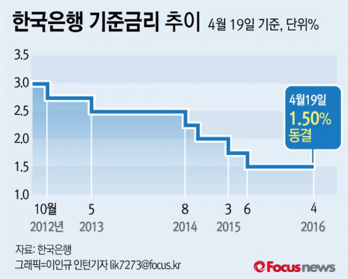 (서울=포커스뉴스) 한국은행 금융통화위원회(금통위)는 19일 정례회의를 열고 4월 기준금리를 연 1.50%로 동결했다.