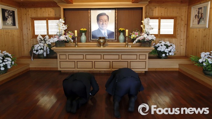 (서울=포커스뉴스) 문재인 전 더불어민주당대표가 18일 김대중 전 대통령의 3남인 김홍걸 더불어민주당 국민통합위원장과 함께 전남 신안 하의도에 있는 김 전 대통령의 생가를 방문, 김대중전대통령 영정에 절을 하고 있다.<사진제공=문재인의원실>