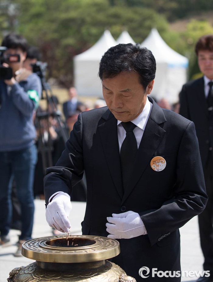 (서울=포커스뉴스) 19일 오전 손학규 전 더불어민주당 상임고문이 서울 강북구 국립 4.19민주묘지를 찾아 참배하고 있다.