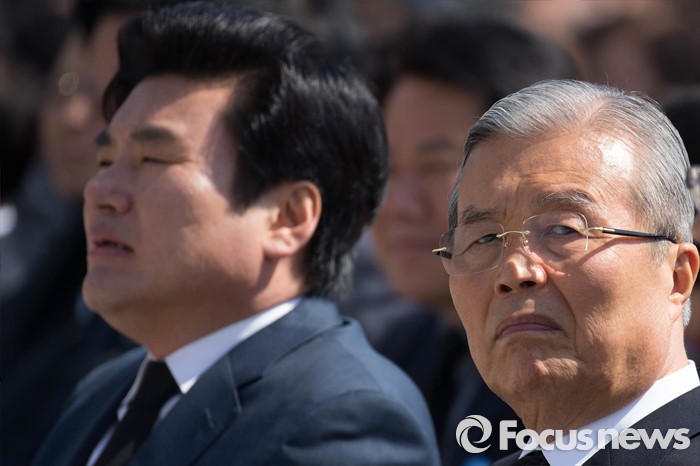 (서울=포커스뉴스) 19일 오전 서울 강북구 국립 4.19 민주묘지에서 열린 '제56주년 4.19혁명 기념식'에서 원유철(왼쪽) 새누리당 원내대표와 김종인 더불어민주당 비대위 대표가 참석하고 있다.