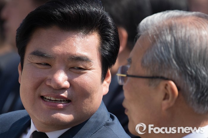 (서울=포커스뉴스) 19일 오전 서울 강북구 국립 4.19 민주묘지에서 열린 '제56주년 4.19혁명 기념식'에 참석한 원유철(왼쪽) 새누리당 원내대표와 김종인 더불어민주당 비대위 대표가 대화하고 있다.