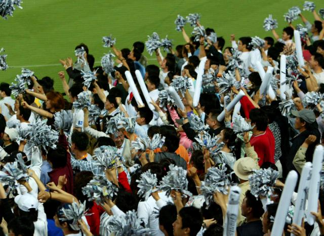 또 선수들은 84년과 92년 우승 당시 입은 푸른색 유니폼을 입고 출장한다. 전좌석 입장요금은 50% 할인된다.프로야구 롯데가 20일 올시즌 첫 챔피언스데이에 신문지 응원을 부활시킨다. 사진은 지난 2005년 사직구장에서 팬들이 신문지 응원을 하고 있는 모습. <사진제공=롯데 자이언츠>