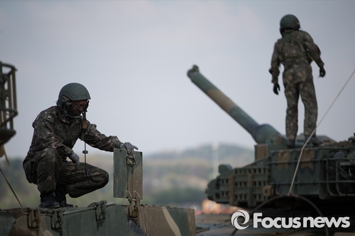 △ K-2 흑표전차 위에서 훈련하는 장병들