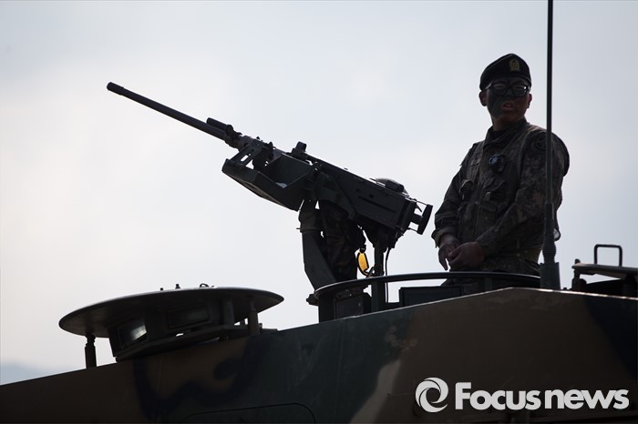 (여주=포커스뉴스) 19일 오전 경기도 여주시 남한강 일대에서 육군 20사단이 K-2 흑표전차 잠수도하훈련을 하고 있다.