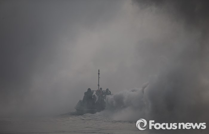 △ 장병들을 싣고 잠수도하훈련 중인 보트
